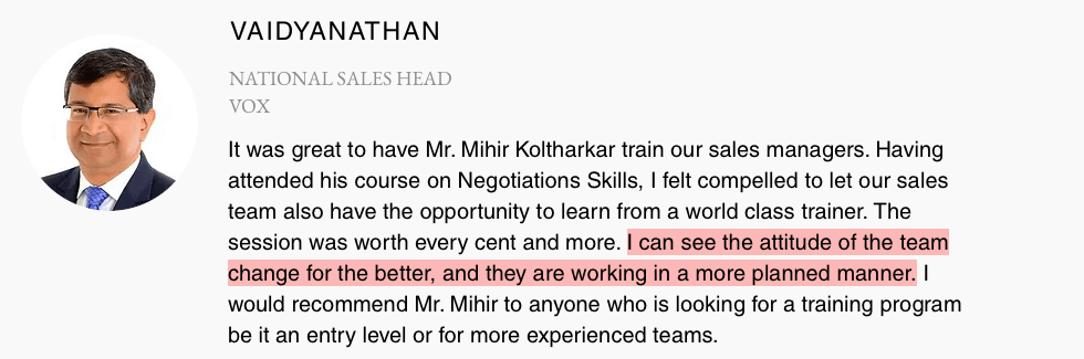 An Industrial Equipment Entreprenuer having zero clients got 11 big clients and 30+ small clients within 6 months after learning the essential sales and negotiation techniques.