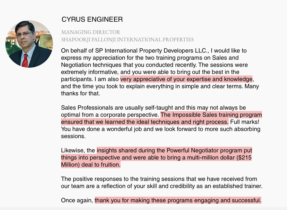 A reputed company in India closed their biggest-ever single deal worth INR 5300 Crores after implementing the learnings from Powerfull Negotiator